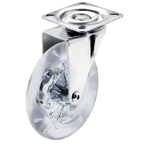 Rodizio de silicone 100mm s/freio 76kg - hardt Características: - Sua aplicação se estende aos mais diversos tipos de mobiliários como, por exemplo, gaveteiros, mesas, cadeiras, estantes, racks e camas conferindo um estilo próprio a qualquer projeto. - É um produto de fácil instalação, tendo como principal ponto de atenção o correto dimensionamento da carga que cada rodízio pode suportar, evitando assim seu mal funcionamento e, consequentemente, a diminuição da vida útil do produto e danos ao mobiliário. - Produzidos em PU. - Acabamento: cromado/incolor - Capacidade de carga 76KG. -tamanho: 100mm - Placa giratória, sem freio.