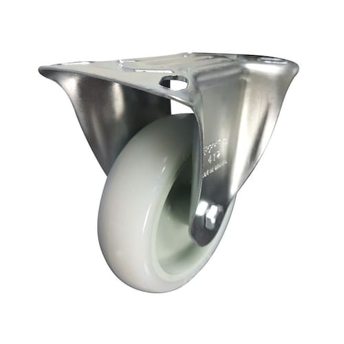 O Rodízio Fixo é ideal para cargas leves e moderadas com tração manual. Construído em chapa de aço estampado e zincado, com placa de fixação.
