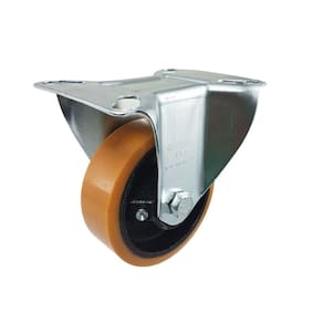 A roda é confeccionada em poliuretano moldado, com núcleo em ferro fundido e mancal com bucha de nylon, garantindo maior capacidade de carga e resistência a óleos, graxas, solventes, sais e produtos químicos.