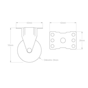Rodizio Fixo 50mm com estrutura em aço, acabamento galvanizado e roda em PU - D'Zainer