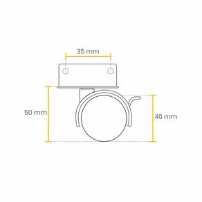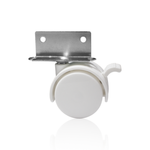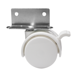 Tipo: Fixo com freio Material: Plástico injetado com aço Acabamento: Branco Chapa: L 15mm Diâmetro da roda: 40mm Largura da roda: 37mm Altura total: 50mm Capacidade de carga: 25kg por rodízio
