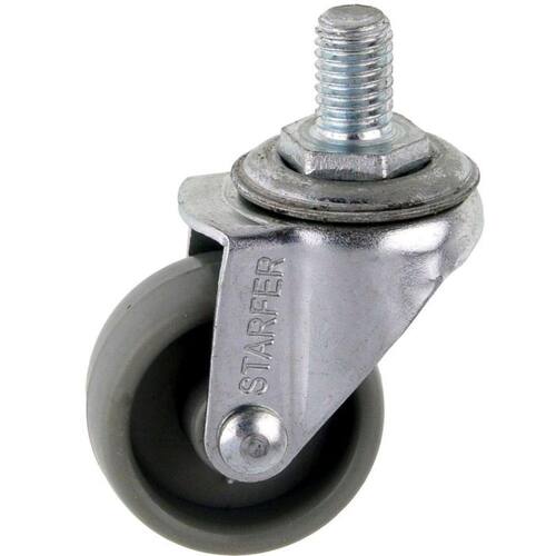 Rodizio em aço carbono zincado e roda com 1.5/8 polegadas (41 mm) de diâmetro em plástico PVC.