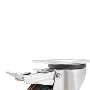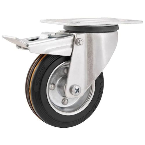 Produto: Rodízio giratório 4" com freio - linha média Marca: Vonder Cor: PretoDescrição: O Rodízio giratório 4" com freio linha média da Vonder é indicado para movimentação de móveis, bancadas, carrinhos, máquinas e equipamentos em pisos com bom estado de conservação. Linha média. Possui núcleo em chapa de aço zincado, proporcionando maior resistência à oxidação/corrosão. Características: • Material da roda.: Borracha • Material da base: Chapa de aço • Cor da roda: Preto • Tipo de base do rodízio: Tipo mesa • Tipo de freio do rodízio: Com freio.Especificações: Diâmetro da roda.: 4" - 101,6 mmLargura da roda: 28,0 mmMaterial da roda.: BorrachaMaterial da base: Chapa de açoCor da roda: PretoDiâmetro do eixo da roda.: 12,0 mmCapacidade de carga: 88,0 kgfAltura total suporte + roda : 128,0 mmTipo do sistema de rolagem: Rolamento com roletes.