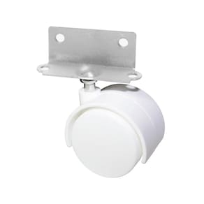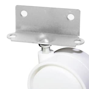 Material: Ferro de alta resistência. Diâmetro da Roda: 50 mm. Altura total (incluindo suporte): 60 mm. Distância entre furos: 35 mm. Comprimento do suporte: 52 mm. Cor: Branco. Fixação: Com suporte para parafusos.