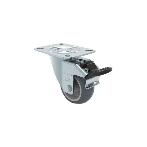 Rodízio Giratório com Freio 3. Pol 75mm Gl 312 Bp G - Schioppa GARFO Fabricado em chapa estampada e cabeçote com dupla pista de , acabamento zincado. Eixo da roda rebitado. RODA BP - Composto Termoplástico com PVC. Dureza: 80 Shore A. -10C a +50C . Produzidas com revestimento em composto termoplástico com PVC e núcleo em polipropileno copolímero recicláveis. Proporcionam rodagem macia e silenciosa, ótima proteção ao piso, excelente resistência química, boa resistência ao desgaste e aos impactos, resultando em ótima relação custo/benefício. A velocidade de trabalho indicada é até 4km/h. Características Gerais do Produto: Tamanho: 10 X 10 X 10 200g : 3 meses Marca: Não Informado Ean: 7892528060740