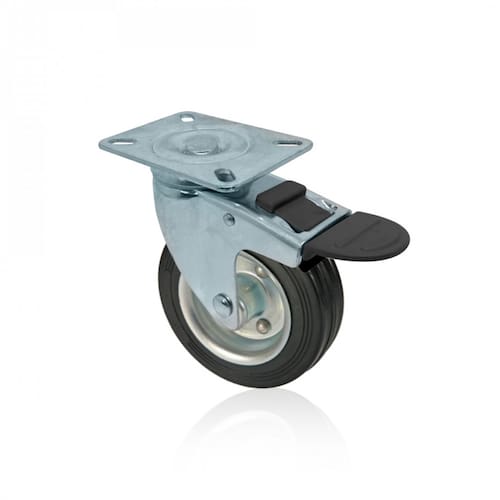 Rodízio Giratório de Borracha, C/ Freio Total, 4" A09742-GFT - Ajax.