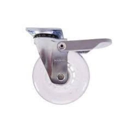 Garfo fabricado em chapa estampada e cabeçote com uma pista de , acabamento zincado. Eixo da roda rebitado, roda colorgel, composto termoplástico com pvc transparente. Dureza: 90 shore a 10ºc a +50ºc injetada com revestimento em composto termoplástico com pvc transparente em diversas cores e núcleo em acrílico. Ideal para móveis, gira com muita facilidade, requerendo pouco esforço para movimentação. Não deforma sob carga estática, apresenta boa resistência química e a impactos moderados. Produzida com material reciclável