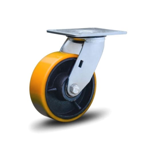 Sua roda é fabricada com poliuretano de alta qualidade com o núcleo em ferro fundido, com duplo rolamento de esfera nas extremidades.