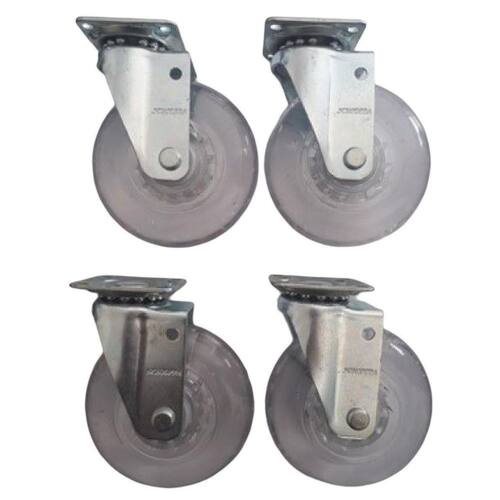 Garfo fabricado em chapa estampada e cabeçote com uma pista de , acabamento zincado. Eixo da roda rebitado, roda 75 mm colorgel, composto termoplástico com pvc transparente. Dureza: 90 shore a -10ºc a +50ºc injetada com revestimento em composto termoplástico com pvc transparente em diversas cores e núcleo em acrílico. Ideal para móveis, gira com muita facilidade, requerendo pouco esforço para movimentação. Não deforma sob carga estática, apresenta boa resistência química e a impactos moderados. Produzida com material reciclável 4 rodizios giratórios fixação placa quadrada 4 furos medidas 42 x 42 mm entre furos 32 x 32 mm altura rodízio 92 mm capacidade carga por rodízio 50 kgs eixo furo passante sem rolamento garantia 3 meses defeito fabricação Marca: Movifacil