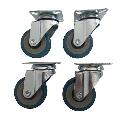 4 rodízios giratórios fixação placa quadrada 4 furos medidas 50 x 50 mm entre furos 35 x 35 mm altura rodízio 70 mm capacidade carga por rodízio 40 kgs eixo furo passante sem rolamento roda 2 polegadas de diametro 50 mm largura 15 mm garantia 3 meses defeito fabricação Marca: Movifacil