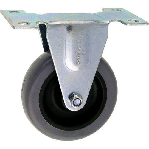 Rodizio Em Aço Carbono Zincado E Roda Com 4 polegadas 100MM De Diâmetro Em Plástico PVC. Eixo Fixo Com Placa Para Aparafusar 4 Furos . Utilizado Como Base Para Movimentação De Moveis, Bancadas, Carrinhos, Divisórias Entre Outros.