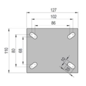 Rodízio para carrinhos e dispositivos de movimentação manual, não aconselhável para utilização em contatos com cavacos metálicos, solventes e cargas pesadas.