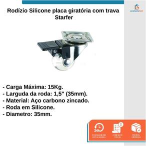 Rodízio Silicone placa giratória com trava STARFER é aplicado a qualquer tipo de carrinho ou equipamento leve, movido por tração manual, em trajetos curtos ou médios, sobre pisos bem conservados. Possui trava para maior segurança.