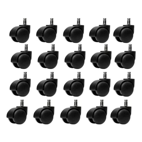 Rodízios Para Cadeira - Kit Com 20 Unid. Rodízios para Cadeira de Escritório Kit com 20 Unidades? Alta Qualidade e Durabilidade ?? Material Resistente: Fabricados em plástico e metal de alta resistência, garantindo longa vida útil.? Movimentação Suave: Rodas duplas que deslizam facilmente, evitando arranhões no chão.? Fácil Instalação: Sistema de encaixe universal para cadeiras de escritório.? Versatilidade: Ideal para cadeiras de escritório, gamer e outros móveis com rodízios.* Rodízio em Nylon 2 Polegadas 50mm para Cadeiras e Movéis em Geral* ATENÇÃO: Este pino de encaixe é padrão em aproximadamente 95% dos modelos de cadeira, todavia recomendamos remover um de seus rodízios e verificar se é este mesmo padrão de sua cadeira, de pino com diâmetro de 11mm e um anel no topo, conforme fotos do produto.CARACTERÍSTICAS DO PRODUTO- Pino removível- Diâmetro da roda: 50mm- Pino removível com 11mm de espessura e 25mm de altura- Pino com anel elástico para fixação- Composição: Corpo e Roda em Nylon, eixo e pino em Aço SAE1020.- Roda Revestida com Poliuretano, NÃO RISCA O CHÃO- Certificação ABNT NBR 13962/06- Carga por rodízio: 30kg Conteúdo da embalagem: 20 rodízios para cadeira? Tamanho do pino: Padrão universal (verifique a compatibilidade com sua cadeira)? Compre agora e renove sua cadeira com rodízios novos! Marca: EDR Import