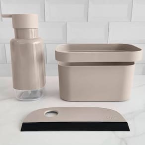 Fabricado em plástico resistente e texturizado (polipropileno), esse rodo para pia de cozinha oferece conforto na pega, enquanto sua borracha termoplástica (TPE) garante eficiência no processo de limpeza da pia ou do vidro do box, por exemplo. O furo presente na peça garante versatilidade e conforto, podendo ser utilizado para pendurar o produto em ganchos ou firmar a mão na hora da limpeza. Além de muito funcional, o rodinho de pia é compacto, evitando ocupar espaço na hora de ser guardado e encaixando-se perfeitamente com outros itens da linha Trium.