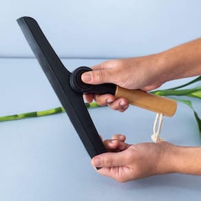 Esse é o rodo de pia dobrável com cabo de bambu da OIKOS.