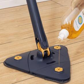 Rodo Mop Mágico Triangular Giratório 360 Rodo Mop Mágico Triangular Giratório 360Deixar os pisos da sua casa sempre limpos é uma tarefa muitas vezes chata, desgastante e que toma boa parte do tempo. Varrer o chão, livrar-se de farelos, pelos de animais e ainda ter contato com a sujeira.Tudo isso se torna cansativo se você não tiver a ferramenta certa.Ele apresenta um recurso inovador de auto torção, para que você não precise se esforçar tanto ou desperdiçar energia curvando-se e torcendo-o manualmente.Facilidades:Conta com um pano de microfibra que absorve e limpa qualquer lugar sem deixar manchas ou arranhões. Seu design ergonômico torna fácil de limpar debaixo de móveis, janelas e outros locais de difícil acesso.Com seu longo cabo você alcançará até os lugares e cantos mais altos e complicados.O esfregão pode ser retraído livremente e pode ter até 1,3 m de comprimento, que pode alcançar facilmente a posição da poeira, ajudando você a limpar a poeira de maneira mais fácil. Características:Design compacto, desmontável, simples e conveniente de usar;Economize tempo e esforço na hora de fazer a faxina em casa;Rotação de 360 remove toda a sujeira em uma única passada;Esfregão com cabeça triangular facilita a limpeza e alcança até os cantinhos mais altos e difíceis de limpar;Sistema inovador de torção separa a água suja da limpa, mantendo suas mãos longe da sujeira e dos produtos químicos;Não precisa torcer nem secar os panos sujos;Microfibra de alta absorção limpa e seca de forma eficaz todo tipo de piso. Conteúdo:1x rodo Mop Mágico Triangular Giratório 3601x esfregão de Microfibra Marca: Moon'S