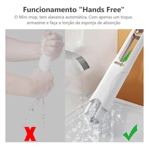 Este mini mop possui um sistema de torção inteligente e sem esforço, tornando a limpeza muito mais prática e eficiente. Sua tecnologia inovadora permite que você limpe diversos tipos de superfícies com rapidez e facilidade, alcançando até os cantos mais difíceis.
