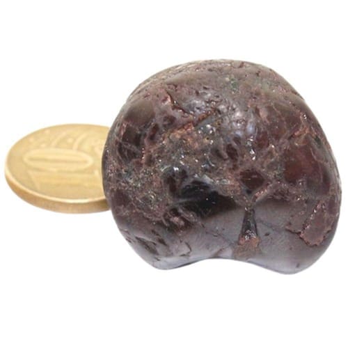 A Rodolita Granada, pedra rolada de Garimpo, 29mm e 37g, irradia energia mística, ampliando sua aura e equilibrando sua espiritualidade.