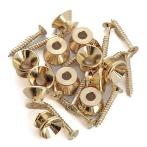 Roldana para Correia de Instrumentos em acabamento dourado modelo Vintage estilo Fender, com parafusos, 12 unidades, Spirit Guitar Parts - SEP142-GD. - Roldana de metal para correia - Acompanha parafusos para fixação - Diâmetro exterior 14.0mm.