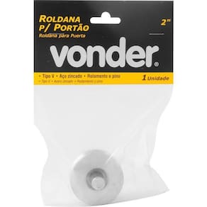 Conteúdo da Embalagem:1 Roldana para portãoDescrição:Roldana para portão 2, tipo V, aço zincado, com rolamento e pino, VONDERAplicações e dicas de uso:Indicada para utilização em portõesDestaques e diferenciais:Possui tratamento zincado, proporcionando resistência à oxidaçãoCaracterísticas Técnicas:Material da roldana: Aço Acabamento da roldana para portão: Zincado Diâmetro da roldana para portão: 2 Largura da roldana para portão: 17 mm Tipo da roldana para portão: Com rolamento e pino Perfil da roldana para portão: Tipo V Capacidade de carga parado Par : 185,0 kgf Capacidade de carga em movimento Par : 370,0 kgfGarantia legal: 90 dias Marca: Não Informado