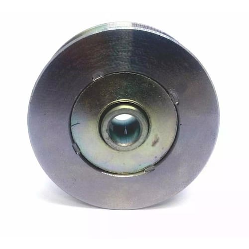 Roldana de aço 3" canal em u marca: metalpark modelo: aço canal em u para portão tamanho / diâmetro: 75mm / 3" largura do canal: 16mm largura sem o tubo: 19mm largura com o tubo: 26mm diâmetro / circunferência do tubo: 17mm diâmetro/ circunferência interna do tubo: 9,5mm peso: 450g corre em trilho de 5/8" ou de ½" para ser utilizada com parafuso sextavado 5/16" - 8mm de diâmetro x 50mm de comprimento, cabeça chave 13 e porca 13 não acompanha parafuso