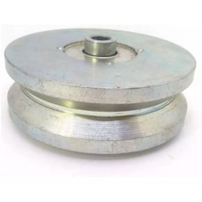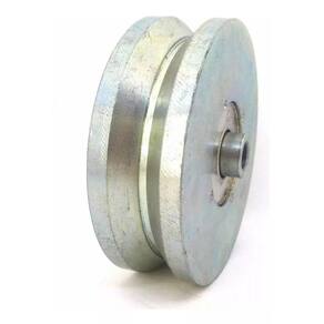 Roldana de aço 5" canal duplo em vDesenvolvidas para trilhos e para cabos de açoMarca: metalparkModelo: aço canal duplo em v para portãoTamanho / diâmetro: 125mm / 5"Largura do canal: 15mmLargura sem o tubo: 36mmDiâmetro / circunferência do tubo: 20mmDiâmetro/ circunferência interna do tubo: 12,8mmPeso: 3050gCorre em trilho de 5/8"Para ser utilizada com parafuso sextavado 1/2" x 3, cabeça chave 19 e porca 19 Não acompanha parafuso