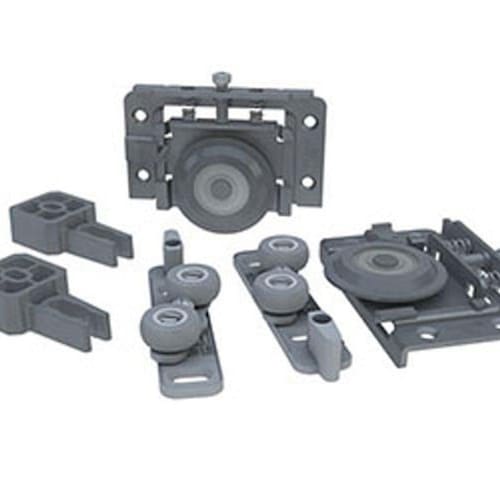 Kit de roldanas para porta de correr ro-624030 com guia universal Sistema com regulagem diferenciada, muito mais fácil e prático com molas anti-descarrilamento e um corpo mais robusto. Desempenador serve para prevenir o empenamento das portas ou alinhar portas já empenadas.