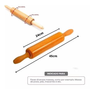 Prático e fácil de usar, o Rolo para Massa em Madeira 43cm é perfeito para abrir massa caseira de maneira uniforme e eficiente.