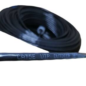 Cabo de rede UTP Outdoor CAT 5E Roll Cabo de colocação externa, CCA PVC+PE unifilado com filtro UV de 6 mm, revestimento duplo e forro de PVC. Produto de alta qualidade em caixa dispensadora. Aplicações: -Vídeo de banda larga (500 MHz) - Gigabit Ethernet - ATM de 155/622 Mbps - 10 Base T (IEEE 802.3) - 100 Base T (IEEE 802.3u) TP.PMD - ISDN