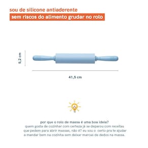 ":: Esse é o rolo de massas da OIKOS, que tem como missão deixar qualquer um bem passado. :: Não gruda: ele é revestido com silicone antiaderente, o que permite os alimentos como massas, deslizarem suavemente sem grudar no rolo, mesmo quando estão quentes. :: Sem marcas: ele também não deixa marca de dedos nas massas, pois sua carretilha de rolagem tem uma diferença de altura que faz a diferença no acabamento. :: Higiênico e durável: o silicone garante a boa higienização do produto, já que sua superfície lisa não retém cheiro nem prolifera bactérias. :: Livre de BPA: não libera substâncias tóxicas na comida. :: Fácil de lavar: ele também pode ir na lava-louças."