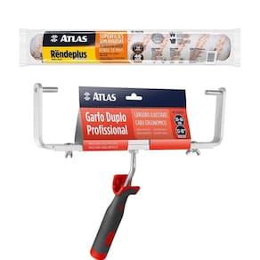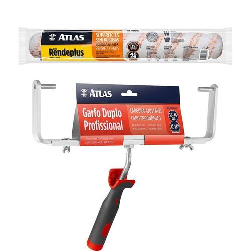 Kit de Pintura Atlas - Rolo 46cm + Garfo Duplo Ideal para quem busca rendimento, agilidade e acabamento . O Rolo Rendeplus 46cm cobre grandes áreas com rapidez, oferecendo excelente absorção e liberação de tinta. Já o Garfo Duplo AT360/46 garante firmeza e conforto, com estrutura reforçada e cabo emborrachado, sendo compatível com rolos de 30 a 46cm e prolongadores com rosca. Benefícios: Alta cobertura com rolo de 46cm Manta resistente: microfibra de poliéster 19mm Ideal para superfícies semi-rugosas Garfo duplo ajustável: firmeza e estabilidade Cabo ergonômico e compatível com prolongadores com tintas acrílica, PVA e esmalte Ean: 7894690047246