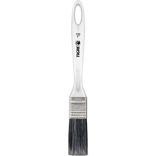 Trincha média multiuso para todos os tipos de tintas látex, acrílica, esmalte, verniz, stain filamento sintético gris que proporciona um excelente acabamento em todas as superfícies como paredes de alvenaria, madeira ou ferro. Tamanho 1 polegada.