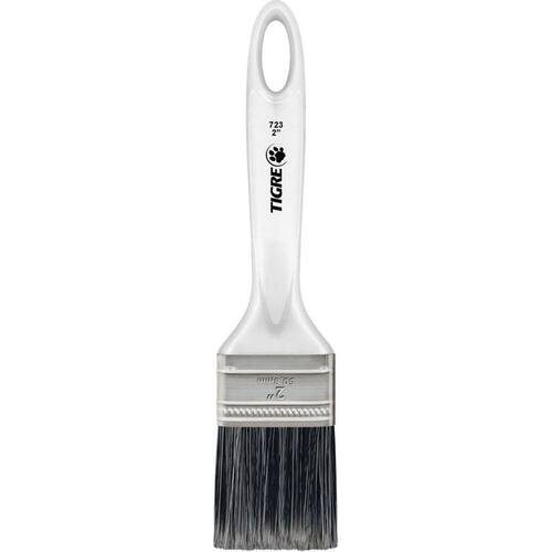 Trincha média multiuso para todos os tipos de tintas látex, acrílica, esmalte, verniz, stain filamento sintético gris que proporciona um excelente acabamento em todas as superfícies como paredes de alvenaria, madeira ou ferro. Tamanho 2 polegada.