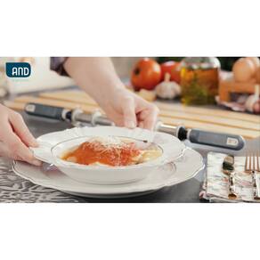 - Ideal para cortar massas manualmente; - Possui 6 lâminas (corta 5 tiras de massa por vez); - Largura do corte 4,60cm, ideal para Tortéi; - Cabo com detalhe de apoio, proporcionando maior firmeza e segurança no manuseio; - Cabo com furo passante para pendurar o utensílio; - Design moderno e inovador com cores diferenciadas; - Rolo desenvolvido em aço cromado; - Cabo do rolo em polipropileno; - Prático e fácil de usar.