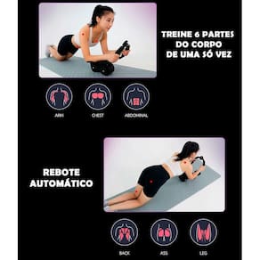 Características Gerais: Rebote Automático: A roda abdominal é equipada com um sistema de rebote automático, facilitando o retorno à posição inicial e proporcionando maior segurança durante o exercício. Temporizador Integrado: Possui um temporizador embutido que permite monitorar o tempo de treino, ajudando a manter um ritmo constante e eficiente. Suporte para Celular: Inclui um suporte ajustável para celular, permitindo que você acompanhe vídeos de treino, músicas ou chamadas enquanto se exercita. Apoio Duplo para os Braços: Projetada com apoios duplos confortáveis para os braços, garantindo uma pegada firme e estável durante os exercícios. Duas Rodas Largas e Resistentes: As rodas duplas são largas e fabricadas com materiais de alta durabilidade, proporcionando maior estabilidade e suporte durante o uso. Benefícios de Uso: Suporta até 100kg: A estrutura robusta da roda abdominal é capaz de suportar usuários com peso de até 100kg, garantindo segurança e durabilidade. Exercício de Múltiplas Partes do Corpo: Permite o exercício simultâneo de seis partes do corpo: braços, peito, abdômen, costas, glúteos e coxas. Ideal para um treino completo e eficiente. Facilidade de Uso: Indicada tanto para iniciantes quanto para profissionais, a roda abdominal é fácil de usar, adaptando-se a diferentes níveis de condicionamento físico. Desde treinos de nível primário até avançado, atende a uma ampla gama de necessidades de exercício. Especificações Técnicas: Peso Suportado: Até 100kg Partes do Corpo Exercitadas: Braços, peito, abdômen, costas, glúteos e coxas Componentes: Sistema de rebote automático Temporizador integrado Suporte para celular Apoio duplo para os braços Duas rodas largas e resistentes Vantagens Adicionais: Estabilidade Aprimorada: As rodas largas proporcionam maior equilíbrio, reduzindo o risco de quedas ou lesões durante o exercício. Versatilidade de Treino: Seja para fortalecer o core, tonificar os músculos ou melhorar a resistência, a roda abdominal oferece uma solução versátil para diferentes objetivos de treino. Design Ergonômico: O design ergonômico e os apoios duplos para os braços garantem conforto durante o uso prolongado, prevenindo desconfortos ou lesões. Considerações Finais: A roda abdominal com rebote automático, temporizador, suporte para celular e apoio duplo para os braços é a escolha ideal para quem busca um equipamento de treino completo, seguro e eficiente. Com suas duas rodas largas e capacidade de suportar até 100kg, é perfeita para treinos que vão do nível iniciante ao , proporcionando benefícios significativos para diversas partes do corpo.