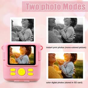 ?Câmera instantânea segura para crianças?A câmera instantânea digital usa a tecnologia de impressão térmica sem tinta, você pode tirar fotos facilmente sem adicionar tinta. 3 rolos de papel para impressão, cada rolo de papel térmico pode imprimir cerca de 75 fotos. Fornecemos adesivos e caneta colorida para crianças decorarem fotos em preto e branco, estimulando sua imaginação e criatividade.