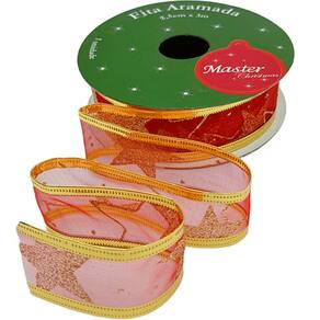 Rolos Fitas Aramada Estrelas Natal Gliter Kit 6pçs 2,5cm 3m -