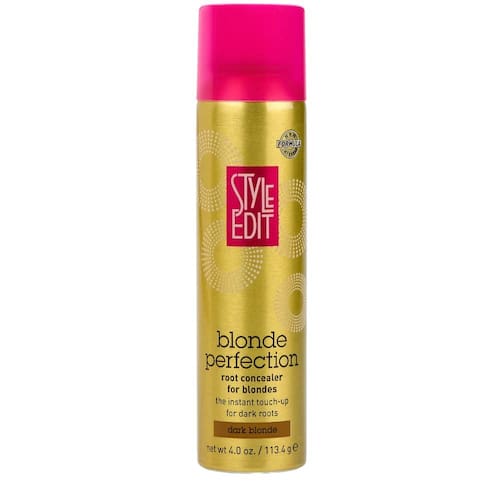 Spray de retoque Style Edit Dark Blonde Root Concealer | Cobre instantaneamente raízes cinzentas | Produtos de cobertura de cabelo para mulheres com qualidade de salão de beleza | 4 onças (pacote com 1)