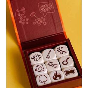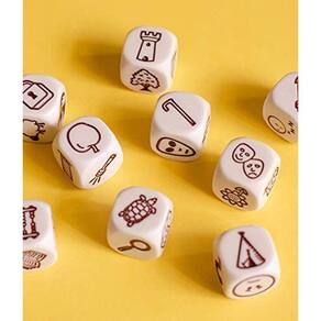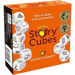 Uma ferramenta para o desenvolvimento da criatividade, imaginação e até improviso! Rory’s Story Cubes é uma caixa com nove dados, sendo que cada um deles possui seis ícones diferentes, resultando em um total de 54 figuras ao todo. Em cada rodada, um jogador deve começar rolando um número de dados e iniciando a frase com “Era uma vez...” e continuando sua história usando as palavras representadas pelas imagens que saíram nos dados.