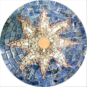 Especificações técnicas do mosaico: Feito com pedras - Mármores e granitos de todo o e importados da Europa e Ásia - para obter todas as cores desejadas em pedras naturais; Vem todo montado sobre tela, só colocar conforme manual de colocação, Resistência e Durabilidade em área interna e externa; Espessura de 10 mm Mesma espessura do porcelanato ou piso cerâmico Liso e agradável para uso diário; Mosaico feito integralmente à mão com técnica do mosaico romano;