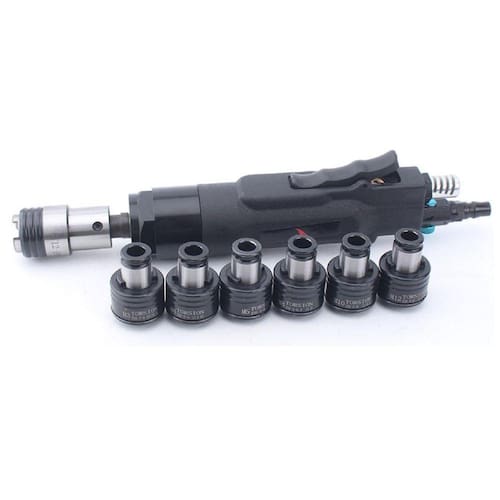 Rosqueadeira pneumática m3-m12 com kit pinças porta machoA máquina rosqueadeira pneumática é aplicável a toda a indústria de fabricação de máquinas, máquina-ferramenta, máquinas do molde, máquinas plásticas, máquinas de impressão, fabricantes de máquinas de embalagem, máquinas de engenharia, peças da motocicleta do automóvel, motores de aviação, material circulante, máquinas de tabaco e máquinas gerais e outras indústrias.Características:- velocidade do eixo: 0-300/rpm- tipo do mandril: gt12 mandril de torque flutuante - tap capacidade: m3-m12- peso: 1,5kgConteúdo da embalagem:- 1 rosqueadeira pneumática;- 1 kit pinças para macho m3-m12; m3, m4, m5/6, m8, m10, m12 Marca: Dx Ferramentas