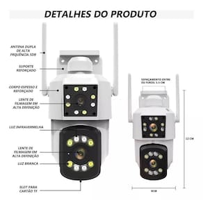 1 Câmera de segurança com lente dupla wi-fi 1 Fonte de alimentação dc 12v 1 Saco de parafuso Homologação Anatel: 061982314497 Marca: Não Informado Ean: 7895277409792