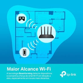 Roteador Archer AX12 Wi-Fi 6 Gigabit Dual Band AX1500 TP-Link Bivolt Descubra a Revolução Wi-Fi com o TP-Link Archer AX12. Experimente velocidades ultra rápidas de até 1,5 Gbps com a tecnologia Wi-Fi 6, garantindo uma navegação e streaming sem precedentes. Conecte mais dispositivos simultaneamente, enquanto desfruta de uma cobertura Wi-Fi forte e confiável em toda a sua área. Prolongue a vida útil da bateria dos seus dispositivos com a inovadora tecnologia Target Wake Time. A configuração é rápida e fácil com o aplicativo TP-Link Tether, e a compatibilidade com padrões anteriores 802.11 garante conectividade com uma variedade de dispositivos Wi-fi. Eleve sua experiência de conectividade com o Archer AX12. Atributos do Produto: Referência: AOTP0239 Código: AOTP0239 Código de Barras: 7898544554119 Cor: Preto : 12 Meses Marca: TP-Link Modelo: Archer AX12 AX1500 Versão: 1.0 Velocidade: 1,5 Gbps Até 1201 Mbps em 5 GHz e 300 Mbps em 2,4 GHz Voltagem: Bivolt Detalhes e Especificações Técnicas: Configuração fácil em minutos com o aplicativo TP-Link Tether Cobertura Wi-Fi forte e confiável com Beamforming e quatro antenas Compatibilidade total com padrões anteriores 802.11 e dispositivos Wi-Fi Prolongamento da vida útil da bateria com a tecnologia Target Wake Time Conectividade otimizada para mais dispositivos com OFDMA e MU-MIMO Tecnologia Wi-Fi 6 para velocidades rápidas e redução de congestionamento Velocidades de 1,5 Gbps 1201 Mbps na banda de 5 GHz e 300 Mbps na de 2,4 GHz Dimensões do Produto: Altura: 3,2 cm Largura: 11,7 cm Comprimento: 21,5 cm Peso: 0,15 Kg Conteúdo da Embalagem: 01 Roteador Archer AX12 Wi-Fi 6 Gigabit Dual Band AX1500 TP-Link Bivolt 01 Manual de instruções Importante Produtos de decoração não inclusos. Imagens meramente ilustrativas; As cores dos objetos podem sofrer alterações devido a luminosidade, configurações do monitor e até mesmo a percepção do usuário; Os dados divulgados são de responsabilidade do fabricante/fornecedor. Homologação Anatel: 052122303177 Marca: Não Informado