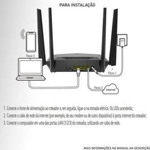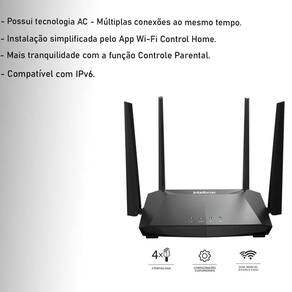 ESPECIFICAÇÕES: - AC 1200; - 4 portas Gigabit Ethernet (10/100/1000); - AC Dual band: 2.4 e 5 GHz; - App Wi-Fi Control Home; - Instalação superfácil; - Controle parental; - QoS; - Compatível com IPv6;