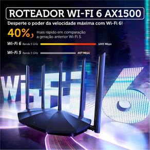 Produto: Roteador Wi-Fi 6 Tenda TX2 Pro Gigabit AX1500 - Dual Band 2.4GHz e 5GHz - MU-MIMO e OFDMA - 5 Antenas 6dBi