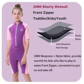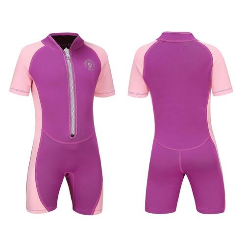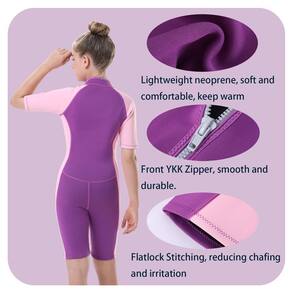 Lemorecn Wetsuits Kids Neoprene 2 mm Zip Frontal Maiô Curto (4022purplepink14) - Roupa de mergulho infantil acessível projetada para todos os esportes aquáticos como natação, mergulho, mergulho, paddle boarding, surf, caiaque ou pendurar na praia. - Neoprene de 2 mm para aquecimento sem sacrificar a flexibilidade. - Proteção UV 50+ ajuda a proteger contra crianças da exposição ao sol - Projetado para aumentar o calor, permitindo que as crianças mergulhem, mergulhem e mergulhem por mais tempo e mais quentes. - Design com zíper frontal: zíper frontal fácil de colocar e tirar