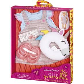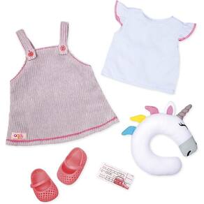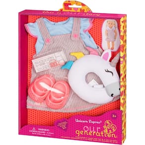 Veja o mundo em cores do arco-íris com esta roupa para bonecas de 46cm. Há muitos lugares interessantes para visitar, e sua boneca tem uma passagem de primeira classe para uma aventura incrível! Esta roupa apresenta uma adorável camisetinha de manga com babados e o vestido moderno é perfeito para o clima de outono. Não se esqueça de pegar seu bilhete OG Express e usar o travesseiro de pescoço de unicórnio para manter sua boneca favorita confortável e aconchegante durante suas viagens! Boneca vendida separadamente. Our Generation não se trata apenas de uma boneca, um lindo conjunto de roupas ou mesmo um kit de acessórios fantásticos. É sobre incentivar crianças de todos os estilos e gostos a criar suas próprias histórias, desenvolvendo um universo ilimitado de brincadeiras com bonecas e acessórios. Sua embalagem é feita de material reciclado, especialmente desenvolvida para uma geração mais ecológica que não aceitaria nada menos. Essa é a nossa história, e essa é a nossa turma! Inclui: blusinha, vestido, sapatos, passagem de trem e travesseiro de viagem. Boneca vendida separadamente.