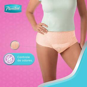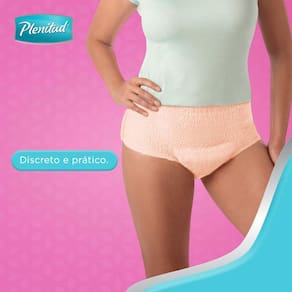 A Roupa Íntima Plenitud Femme proporciona maior conforto para quem tem incontinência urinaria deixando sempre seco e com maior praticidade. Promove absorção rápida dos líquidos permitindo maior comodidade ao se locomover. Além de possuir agentes combatendo mau odor durante todo o dia como a pessoa que você ama realmente merece. A Roupa Íntima Plenitud Protect Plus foi desenvolvido com material de qualidade parecido com tecido que oferece o mesmo conforto e discrição da roupa íntima de algodão. A roupa íntima descartável Plenitud Protect Plus traz dignidade para o adulto com pouca mobilidade e torna mais prático o dia a dia do cuidador. Com seu formato anatômico fácil de vestir e tirar e desenvolvido especialmente para pessoas com incontinência intensa, tem a mesma absorção de uma fralda*. Traz ainda.