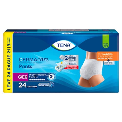 TENA Dermacare Pants - Conforto e Proteção Eficaz Apresentamos o TENA Dermacare Pants, a solução ideal para quem enfrenta incontinência severa. Com um pacote contendo 24 unidades, estas calças de prot